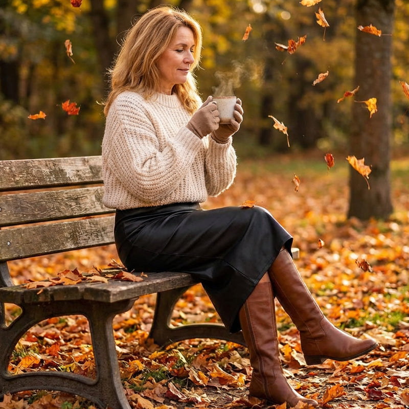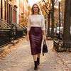 STRETCH FAUX LEATHER - Combines the luxurious look of faux leather with flexible, breathable comfort. The fabric gently hugs your curves without feeling restrictive, allowing for a perfect fit that moves with you throughout your day.